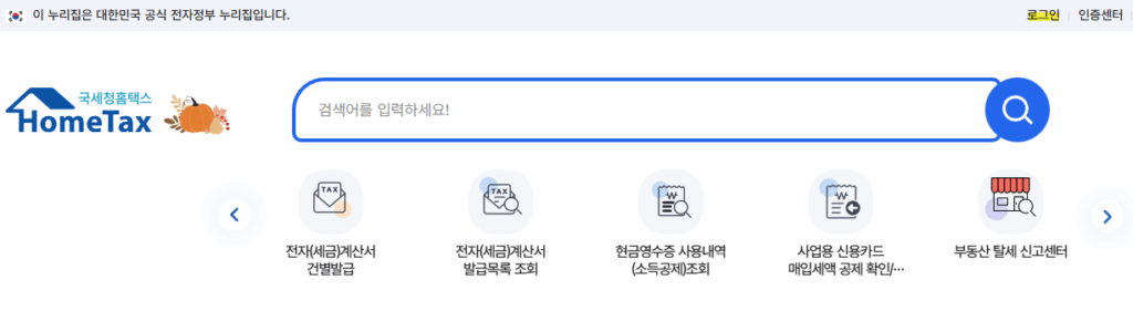 검색창에 “홈택스” 입력 후 국세청 홈택스 선택 | 주소창이 “https://www.hometax.go.kr”로 시작하는지 확인하면 안전합니다. |